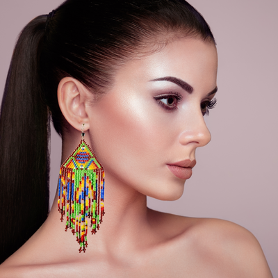 Oversized Dream Catcher Beaded Earrings, Yellow